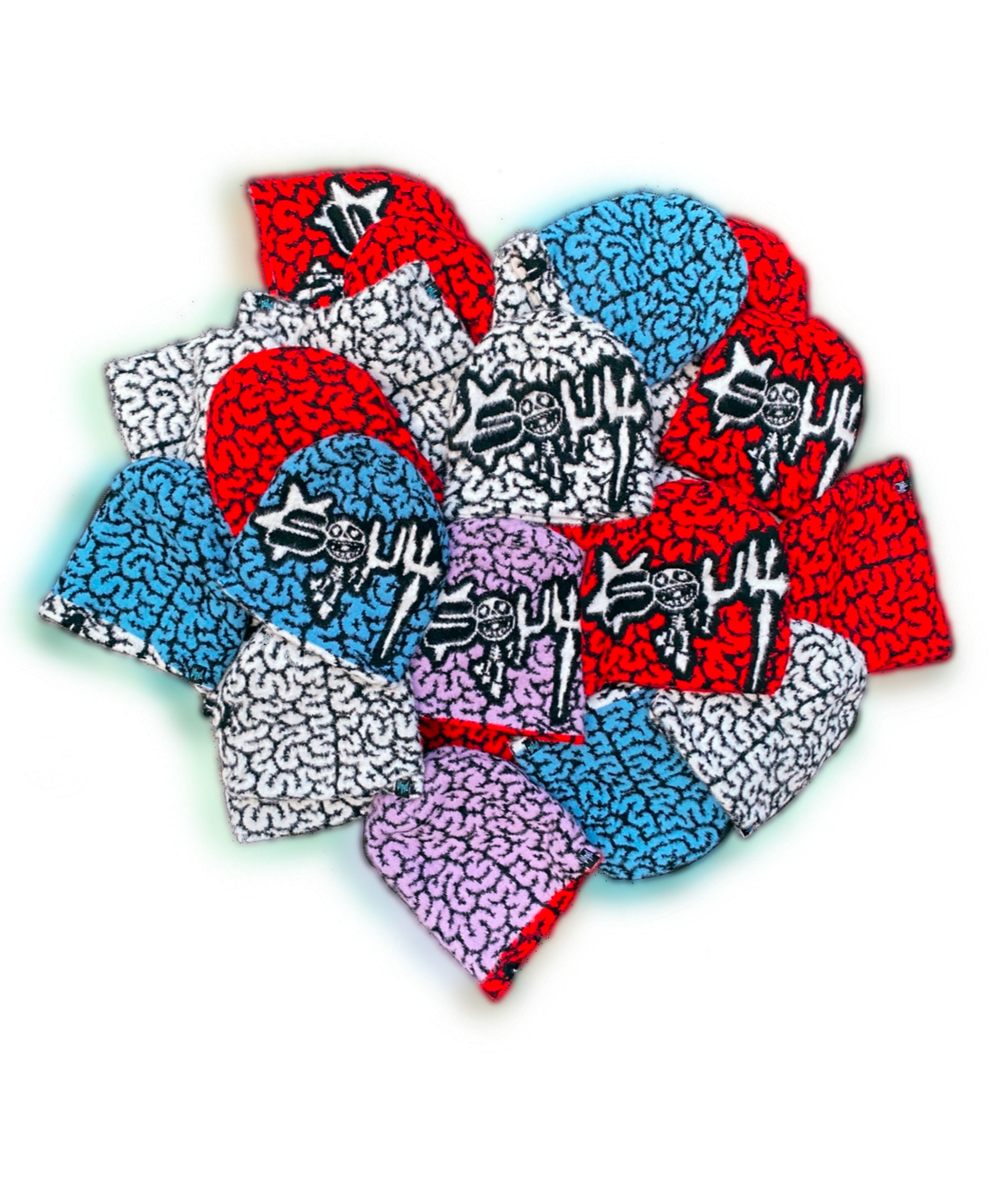 The Reversible Mohair Brain Beanie isn’t just an accessory — it’s a mindset. Fuzzy, loud, and impossible to ignore, the mohair knit gives off raw texture while the reversible build lets you switch styles on the fly. Wear it inside-out, backwards, or however your brain tells you.